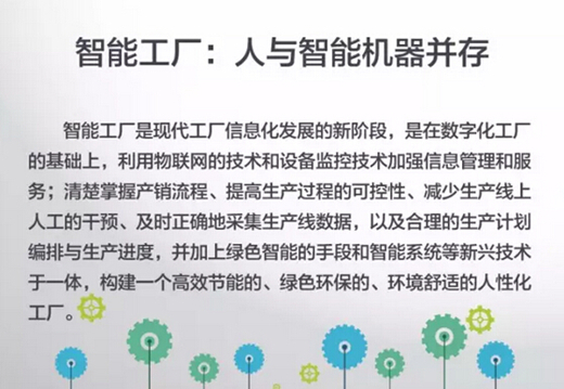 工业4.0是一个全新的时代,一期刚刚开始,预计要30到50年的时间发展引进,按照国家工信部部长所说:德国是从工业3.0串联到工业4.0,中国是2.0、3.0一起并联到4.0。 工信部和中国工程院把中国版的工业4.0的核心目标定义为智能制造,这个词表述非常准确。由智能制造再延伸到具体的工厂而言,就是智能工厂。智能制造、智能工厂是工业4.0的两大目标。